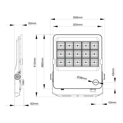 | Nom du fabricant | Noxion LED Floodlight ProBeam V2.0 130W 18200lm 60D - 830-840-865 CCT | IP66 - Symmetrical | |