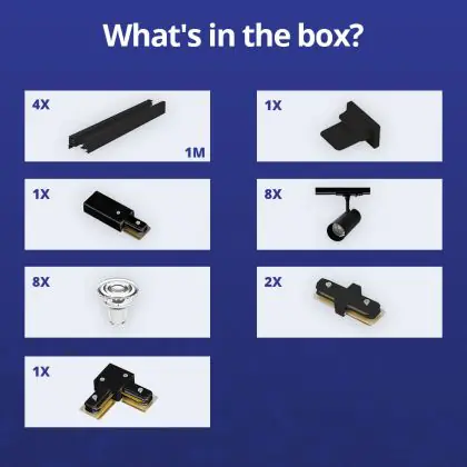Bright Choice Complete Set 1-Fase Rail L 2 x 2 Meter Zwart | incl. 8x Spot + GU10 2700K 3W Dimbaar + Eindkap, Voedingsconnector en L -Verbindingsstuk