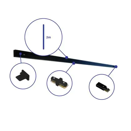 Bright Choice Rail Set 1-Fase 2 Meter Zwart | incl. Eindkap, Voedingsconnector en I-Verbindingsstuk
