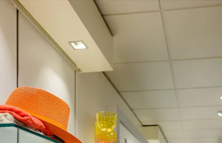 - In de winkel zijn uitsluitend wit gekleurde armaturen gebruikt, wat zorgt voor een rustig plafond. De bezoeker heeft hierdoor direct oog voor het assortiment (geen afleidingen).