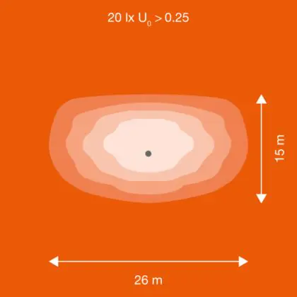 De lichtopbrengst (Lumen), geeft weer hoe krachtig het uitgestraalde licht is. Dit is belangrijk om te weten om de juiste sfeer te creëren. 0 tot 400 Lumen is bij uitstek geschikt voor accent- of sfeerverlichting. Een hoger aantal Lumen is, afhankelijk van de grootte van de ruimte, beter geschikt als ondersteunende- of basisverlichting. Heb je plafonds hoger dan 4 meter, dan is een lichtopbrengst van minimaal 8000lm aan te raden indien heldere verliching gewenst is (vb. in werkomgevingen).