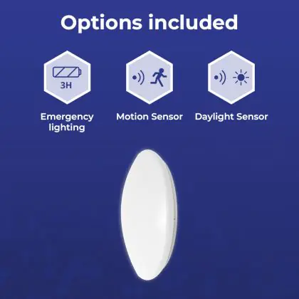 Noxion LED Bulkhead Corido V2 Wit 12/16/20W 2000lm 830-840-865 CCT | IP44 - Bewegings- en Lichtsensor - Nood 3H